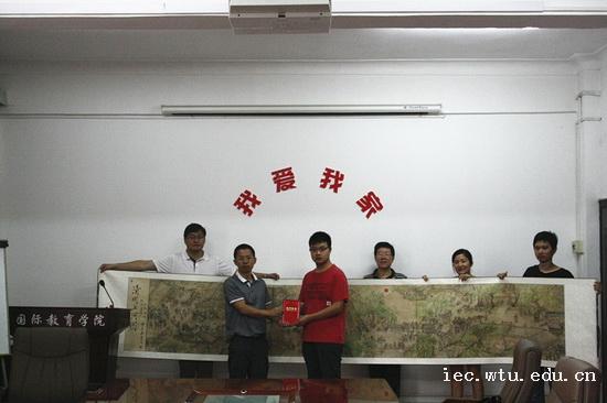 国际学院为王维举行了受赠仪式。黎继子院长为他颁发了证书,感谢他对母校的赠礼,并鼓励他在自己热爱的艺术专业上继续前行,用画笔绘制自己美好的未来。