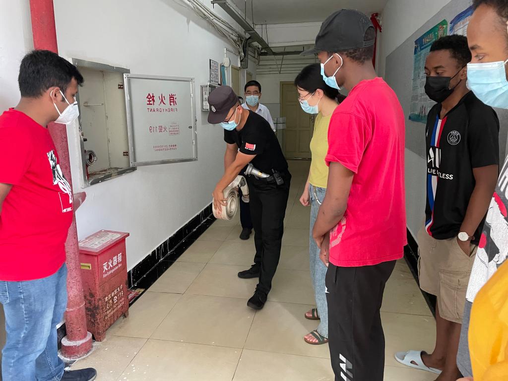 现场教学后,国际处、国际学院领导班子会同留管干部检查了留学生厨房、宿舍的消防隐患,并逐一讲解安全事故预防措施细节和安全事故发生后的科学处理办法。学院领导班子强调,安全工作无小事,留学生安全问题是学院工作的重中之重。2021级新生全部报道注册后,留学生在校人数较去年将增长一倍多,全院上下要以此次教育和实操活动为起点,切实履行安全责任,通过安全检查,排查并解决一切安全隐患,筑牢全员全院安全网。同时,通过建立保卫处、国际学院等多部门协同安全育人机制,以教师安全知识讲解和学生安全演练相结合的工作模式,切实增强学生的安全意识。此外,在安全教育结束后,每位学生应懂得如何预防安全事故的发生,如遇突发安全事件,如何保持清醒的头脑,快速准确地反应和处理,切实将安全工作落到实处,真正保障每位学生的生命财产安全。