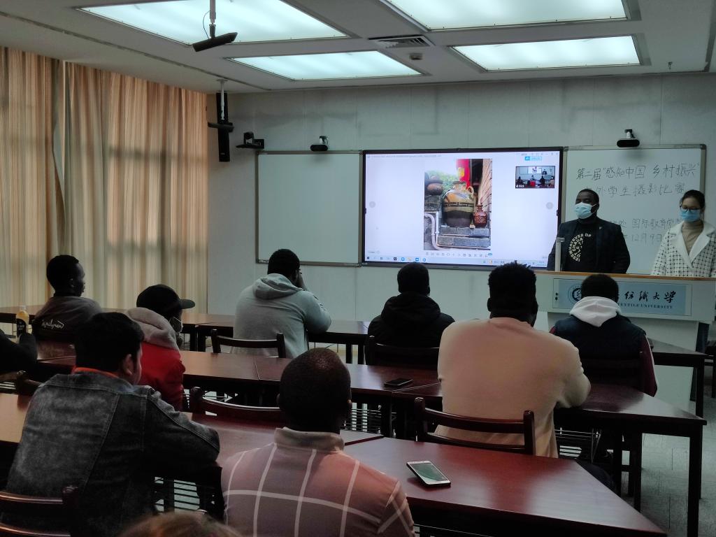 “这是我们上周参观的小朱湾,瞧这屋子,磨盘做院墙,真漂亮!”12月9日,武汉纺织大学来自津巴布韦的Muvoti和30多名中外学生共同参加第二届“感知中国·乡村振兴”摄影比赛,在图书馆智慧教室用摄影作品,讲述自己眼中的美丽乡村。