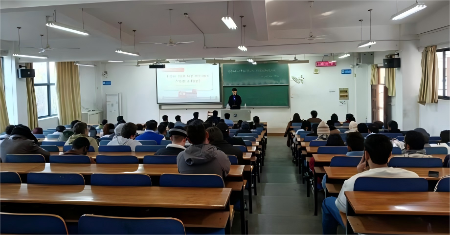 国际教育学院辅导员李佳星老师为新生进行了消防安全知识讲座。结合近年来高校宿舍火灾、实验室火情、留学生宿舍查寝情况等真实案例,用通俗易懂的语言剖析了火灾成因,重点强调了宿舍内违规使用大功率电器、私拉乱接电线、卧床吸烟等常见安全隐患的危险性。针对新生们的生活场景,他详细讲解了火灾初期处置原则、应急逃生技巧,特别提醒大家牢记“湿巾捂鼻、低姿沿墙、不乘电梯、有序撤离”的逃生要领,并通过互动问答环节,解答了同学们关于消防器材使用、火场自救等疑问。