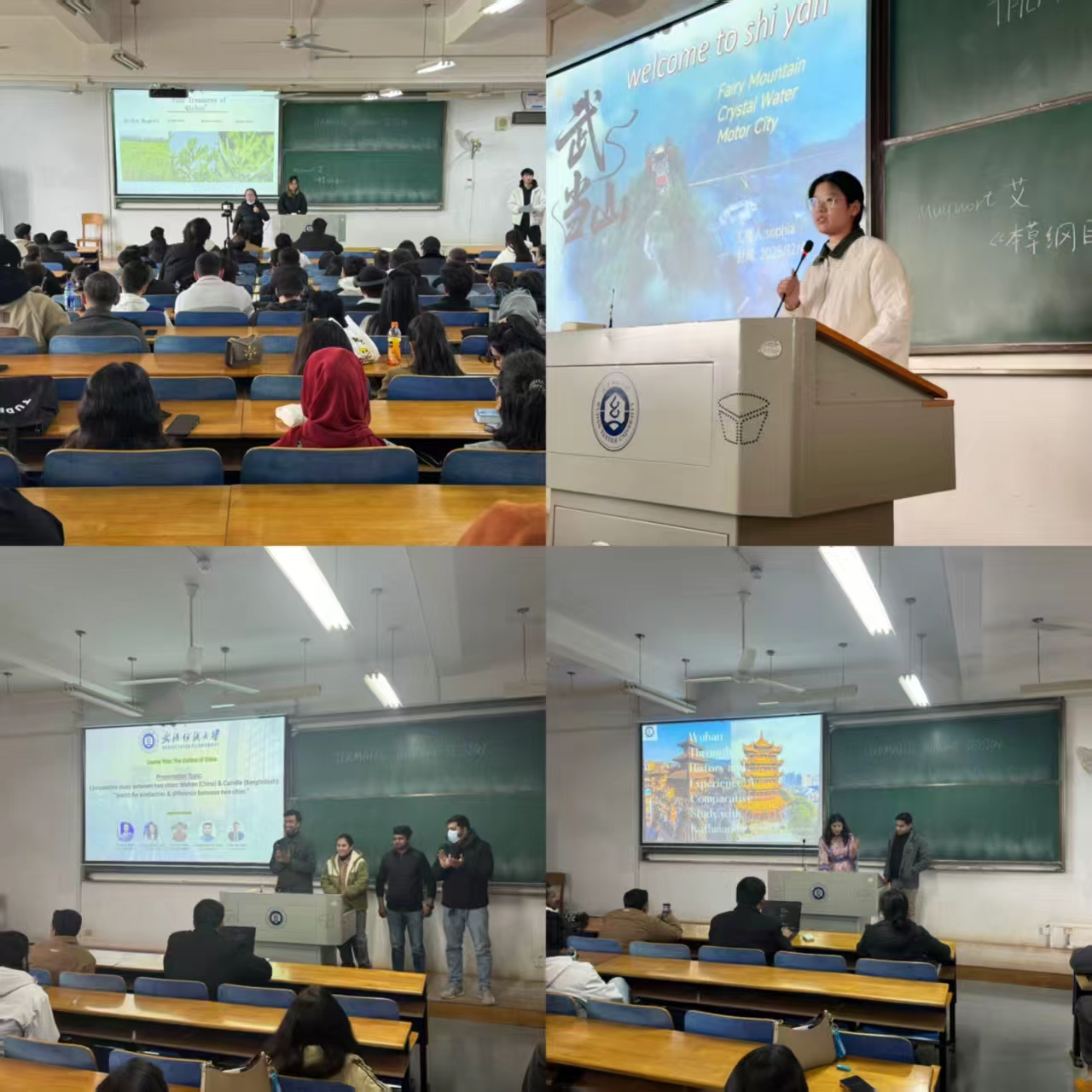 分享会上,有的学生向大家介绍了自己家乡的历史、文化与发展;有的学生聚焦武汉市的发展,向大家分享了自己对于武汉这座城市的了解;有的学生进行了自己家乡城市与武汉市的对比分析。中外学生通过不同的视角,使用生动风趣的语言,深入浅出地分析了城市的发展脉络。