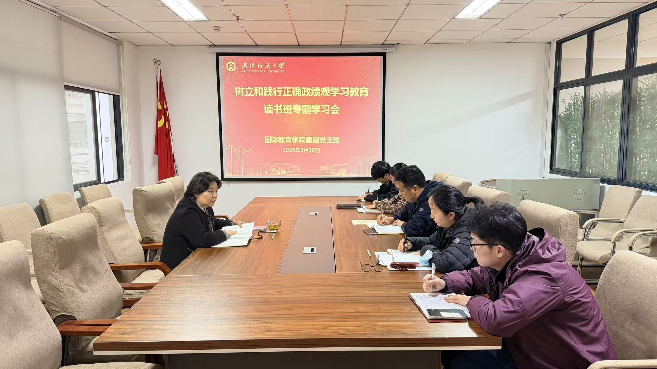 3月30日下午,国际教育学院直属党支部在学院会议室召开树立和践行正确政绩观学习教育读书班专题会议。学院全体教职工参加会议,会议由直属党支部书记陈桂枝主持。