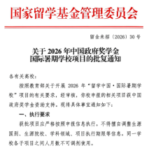 近日,从国家留学基金管理委员会传来喜讯,我校申报的“2026年中国政府奖学金国际暑期学校项目、‘感知中国’来华留学中国政府奖学金生社会实践活动项目”均顺利获批。其中,中国政府奖学金国际暑期学校项目为我校首次斩获,两项项目的成功获批,为学校国际化办学事业再添重磅成果,标志着我校国际化办学水平与综合实力进入新阶段。